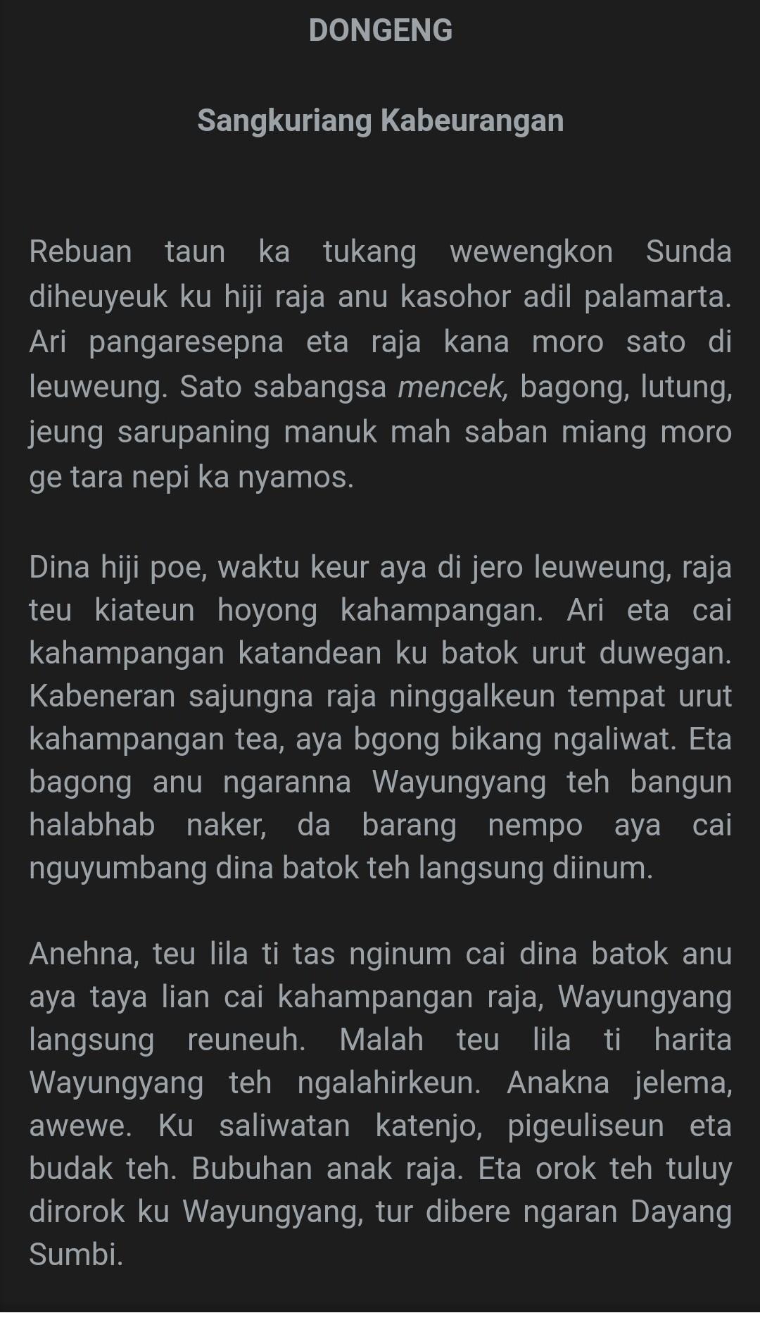 Naon bahasa inggrisna nangtayungan jawaban. Скачать tatarucingan sunda apk 2.1.3 для андроид. Wilujeng tepang deui sareng abdi, artinya selamat bertemu lagi denganku. Contoh tatarucingan bahasa sunda jeung jawabanna. Bahasa inggrisna budak cerik ? Ari daun sampeumah di urab, ari onta mah di arab. Sato naon anu pang leutikna saalam dunya? Tah keur urang sunda asli mah nu kieu teh wariskeun ka anak incu ameh teu setres barudakteh karunya komo sija abimah boga budak campuran cina. Tangtos, jawaban mah relatif da teu aya standar jawaban nasional nu. Game tatarucingan urang sunda game ini khusus bagi yang mengerti bahasa sunda. Tatarucingan urang sunda, kota bandung. Tatarucingan bahasa sunda level 2. Alhamdulillah di kesempatan kali ini di cara menjadi sehat saya akan membahasa tentang contoh tatarucingan bahasa sunda sareng.